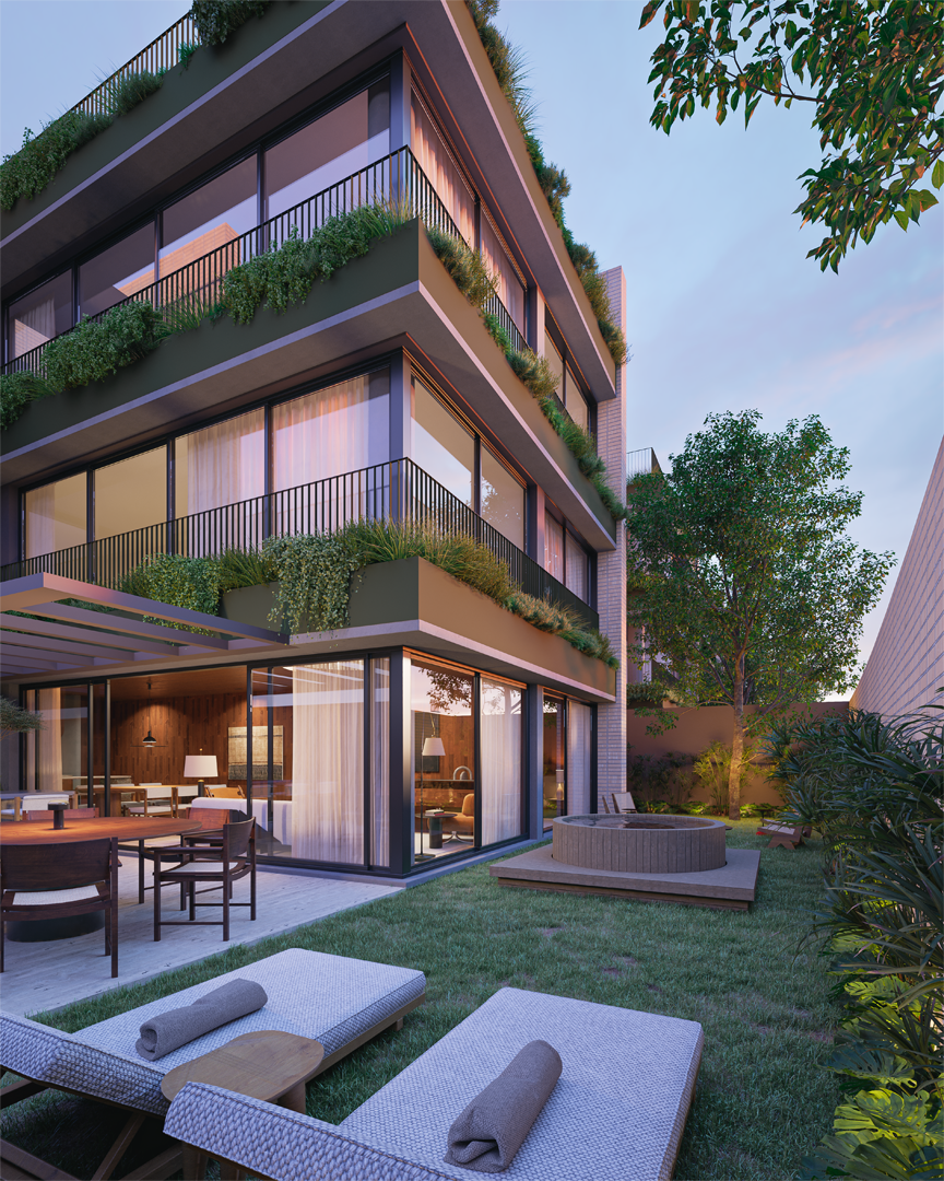 Condomínio de alto padrão exclusivo, com apenas 22 apartamentos tipo Townhouse, projetado pelo renomado escritório Aflalo/Gasperini com projeto de interiores assinados por Quintino Facci e paisagismo por Eduardo Mera.